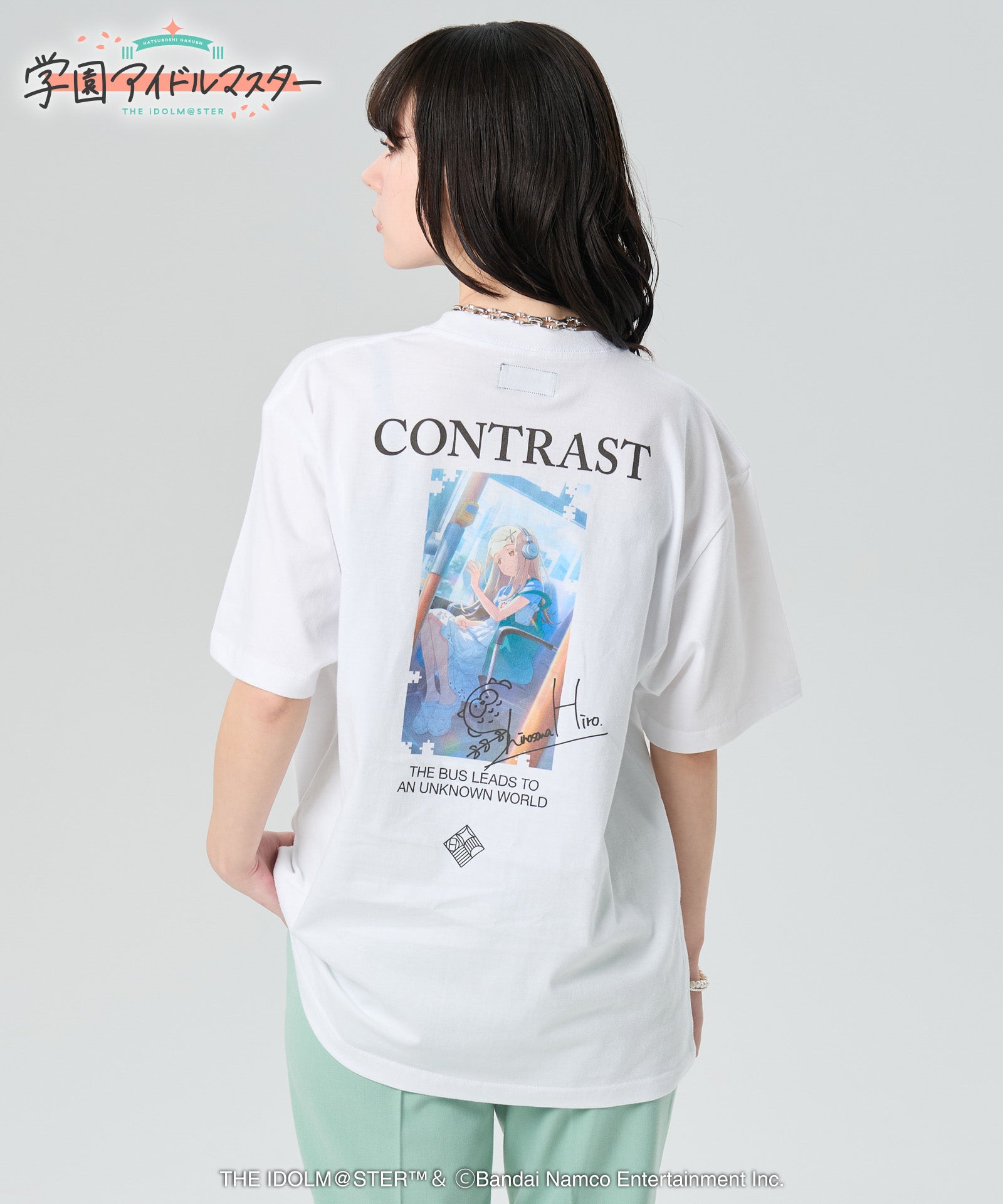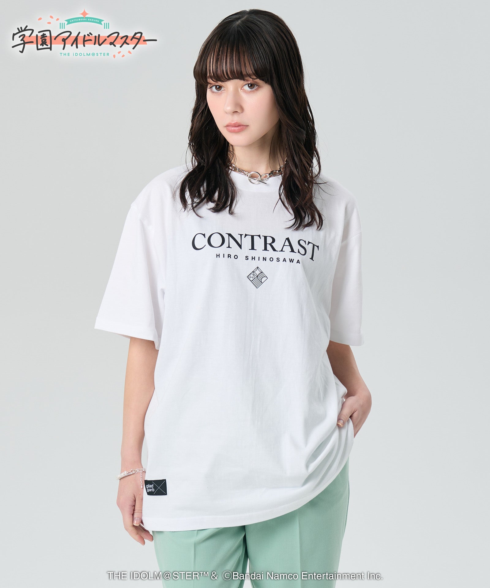gladgarb and ``GAKUENTHE IDOLM@STER” is a collaboration.HIRO SHINOZAWAContrast Tee with the essence of the front and back of the body.