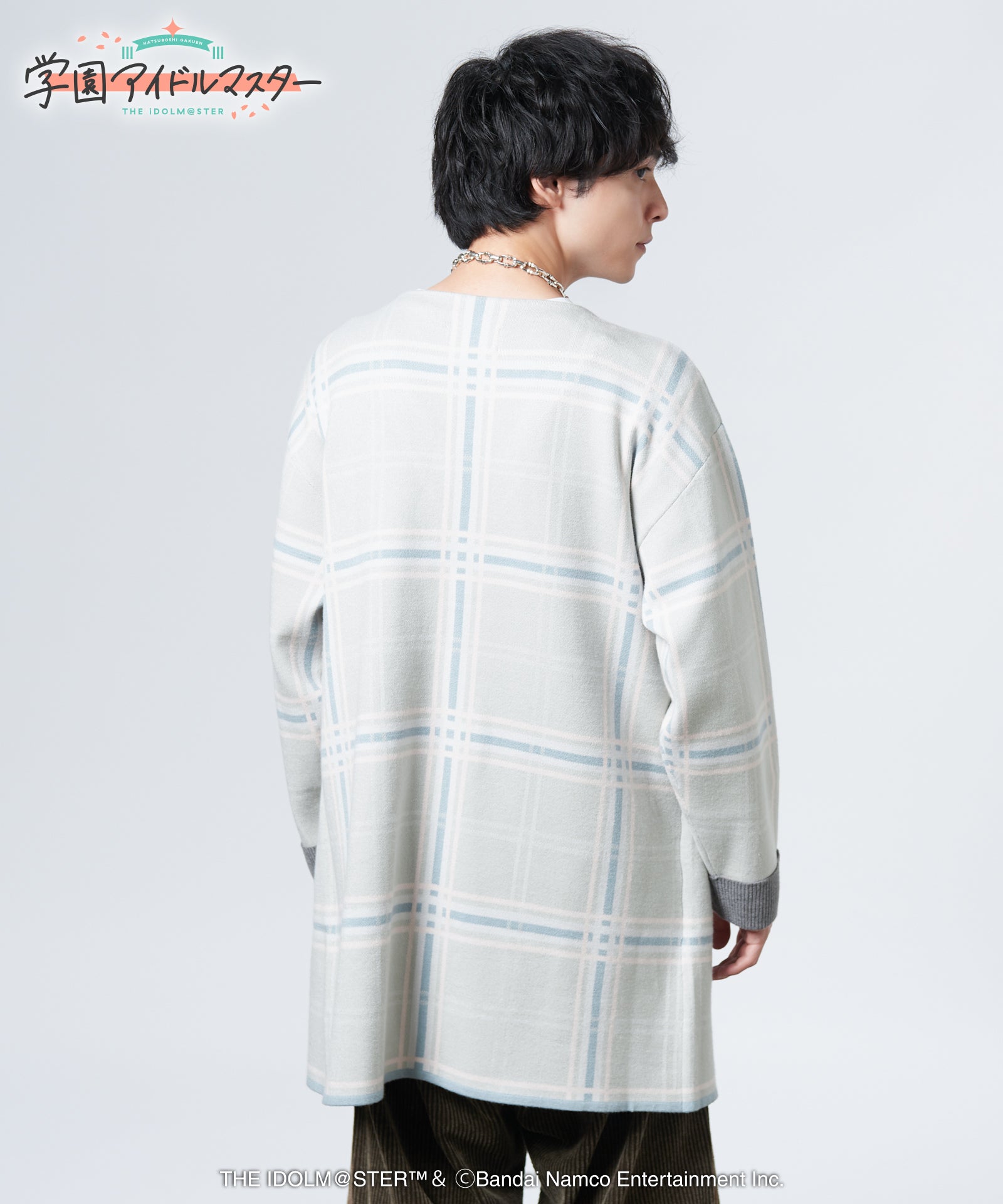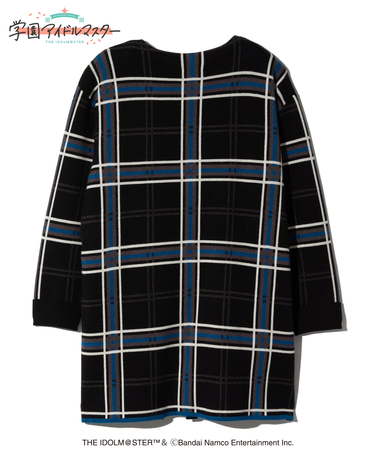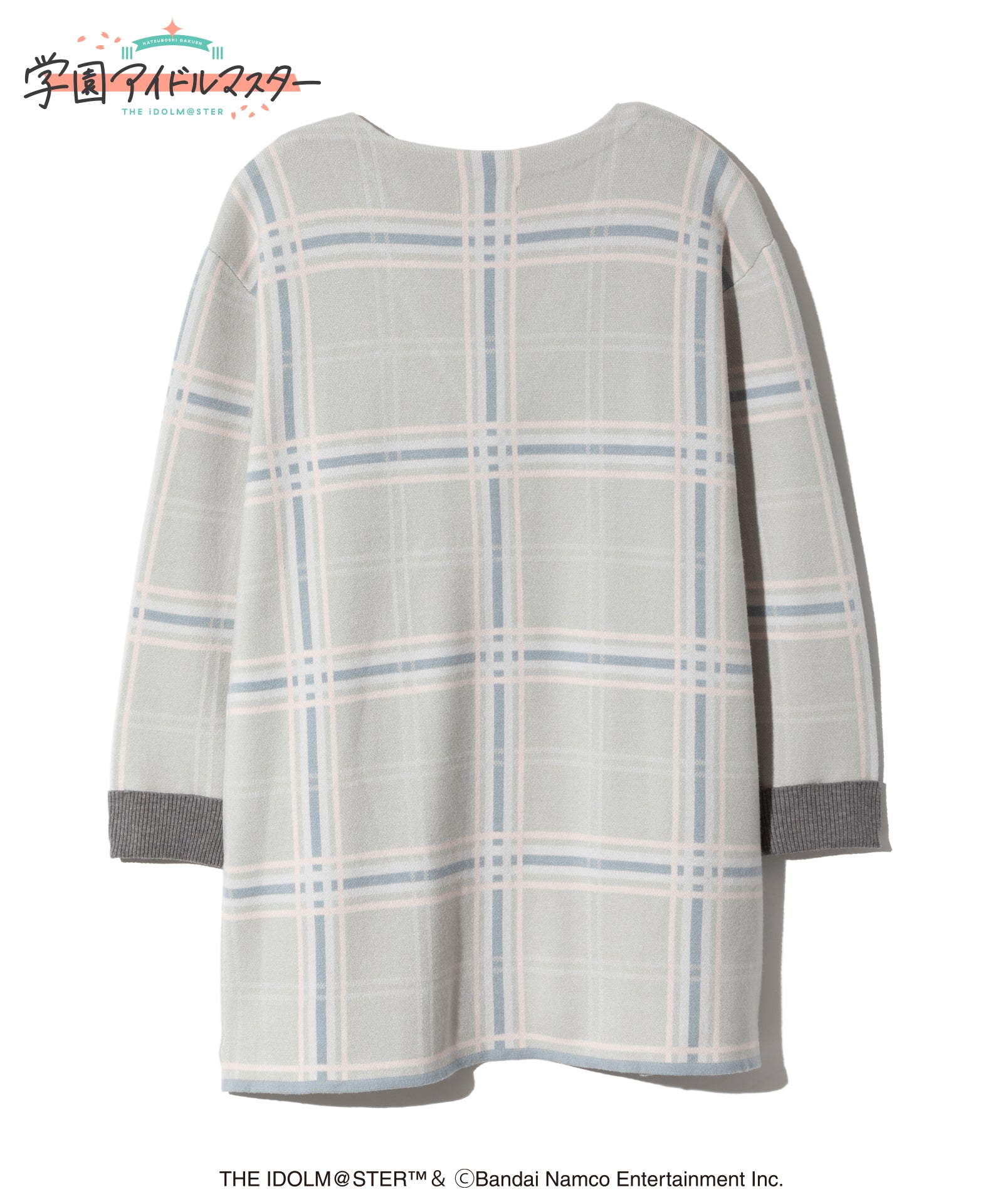 gladgarb and ``GAKUENTHE IDOLM@STER” is a collaboration. Temari Cardigan combines Temari Tsukimura's personal clothes into a single piece of knitwear. The appearance of a polo shirt and long jacket is created with faux layering on the front. Tsukimura Temari's style of rolling up his arms is expressed by the ribbing on the cuffs. Furthermore, the inner collar, first button, and color scheme of the skirt are also reproduced. The large-sized plaid pattern gives it a contemporary look.